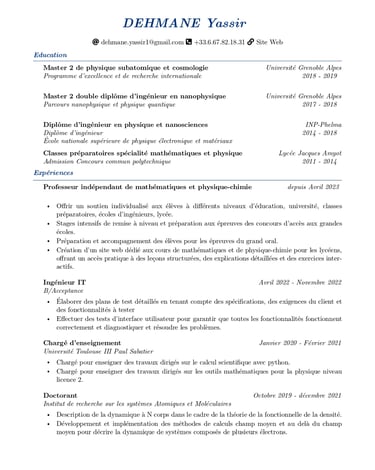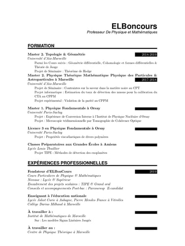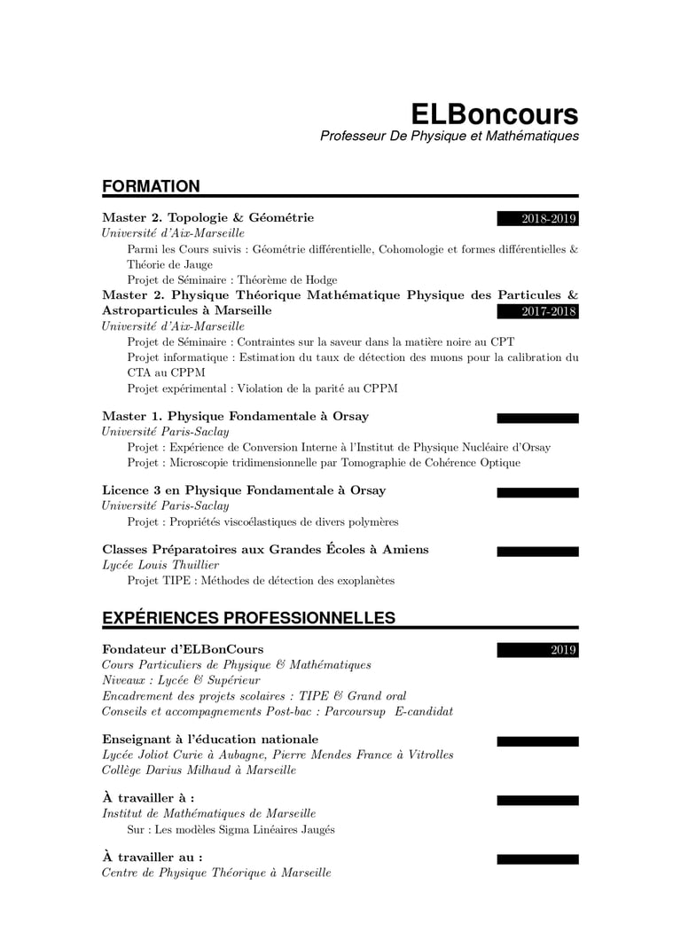 Bienvenue chez Elboncours ! Nous sommes deux jeunes diplômés en physique mathématique, passionnés par les sciences et déterminés à partager notre savoir avec les nouvelles générations d'élèves et d'étudiants. Depuis la création d’Elboncours en 2019, nous mettons notre expertise en mathématiques et physique au service de lycéens visant des formations d'excellence ainsi que d’étudiants en classes préparatoires, en médecine, en écoles d'ingénieurs, ou dans des parcours fondamentaux à l'université. Notre approche est scientifique, rigoureuse et orientée vers l’autonomie des élèves : nous détaillons les leçons, illustrons les concepts abstraits et expliquons l’utilité de chaque notion en stimulant l’esprit critique et le raisonnement. En développant leur capacité de rédaction et en leur enseignant toutes les astuces indispensables, nous leur donnons les clés pour réussir et progresser de manière autonome.